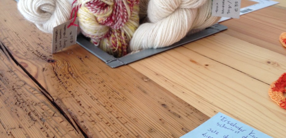 Das Ragù hat mir so gut gefallen, weil es sich vom typischen „Wollladen mit Kaffeeausschank“ abhebt. Es ist eben in erster Linie ein Café, aber äußerst Stricker/innen freundlich. Mark spinnt selbst Wolle, die man auch im LAden erwerben kann. Oder man schaut im fasziniert zu, wie er sich zwischendurch mal ans Spinnrad setzt und ein paar Meter spinnt. Außerdem gibt es viele von ihm und auch anderen lokalen Stricken/innen gestrickte Sachen, die man im Laden erwerben kann.