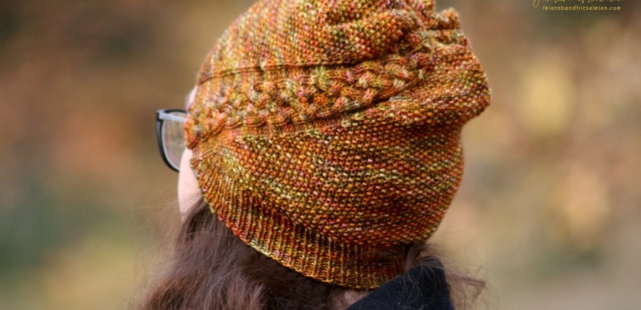 Mich hat besonders überzeugt, dass Caro sich beim Körper der Mütze statt für glatt rechts oder links für ein Perlmuster entschieden hat. Das macht Trena zum einen besonders und zum anderen perfekt für harmonisch gefärbte Multicolor-Garne. In meinen Augen ist ein Perlmuster perfekt, um die wunderschönen Farbschattierungen handgefärbter Wolle zur Geltung zu bringen. Meine Trena habe ich daher auch aus einem Multicolorgarn gestrickt: Alegria von Manos Del Urugay in wunderschönen Herbsttönen. Wolle und Muster ergänzen sich hier perfekt, wie ich finde.