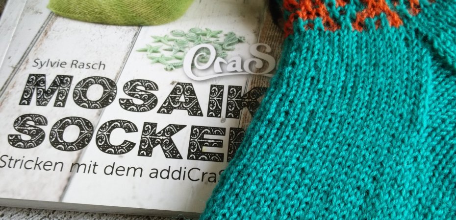Dass Mosaikmuster gerade irgendwie total im Trend sind, habe ich ja schon beschrieben. Einer der Namen, den man in der deutschen Strickdesigner-Szene mit Mosaikmustern verbindet, ist sicherlich Sylvie Rasch aka CraSy Sylvie. Sylvie hat bereits im vergangenen Jahr ein Buch zum Thema Mosaiktücher stricken herausgebracht. In ihrem neuen Buch „CraSy Mosaik Socken. Stricken mit den addiCraSyTrio“ [Amazon Affiliate Link] zeigt sie, dass man mit Mosaikmustern noch viel mehr machen kann als immer nur Tücher. Socken zum Beispiel.