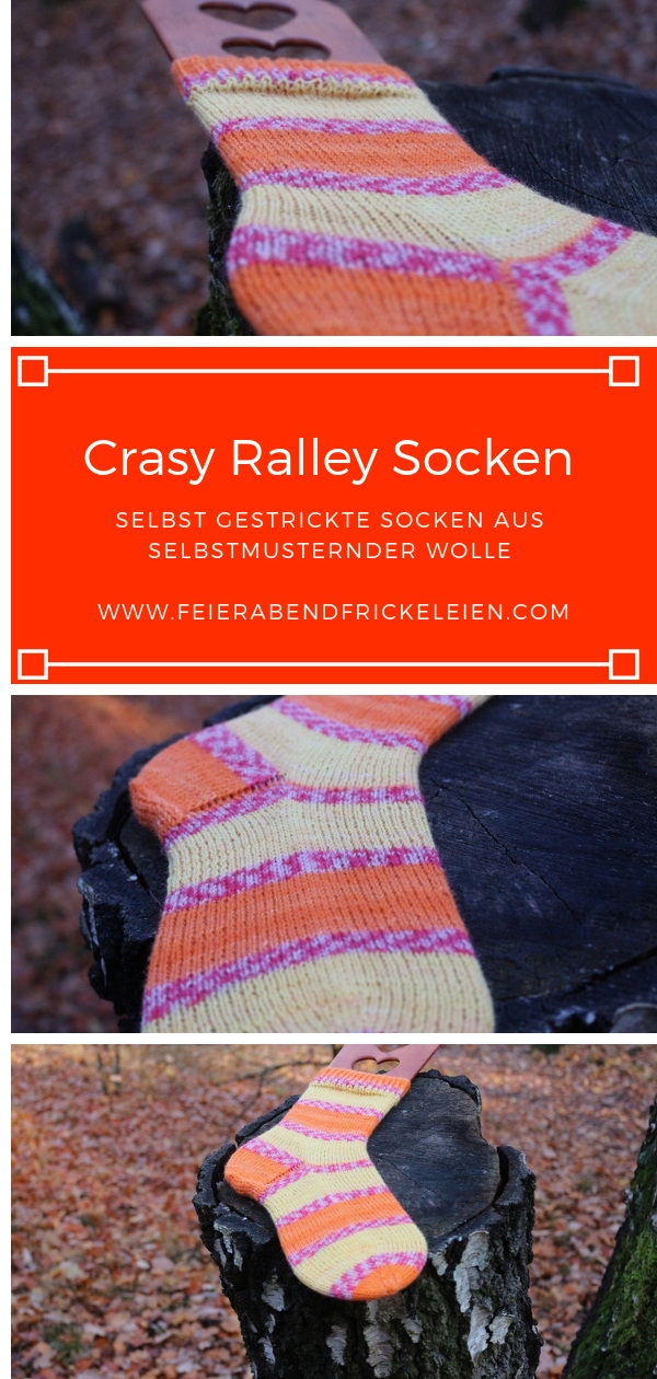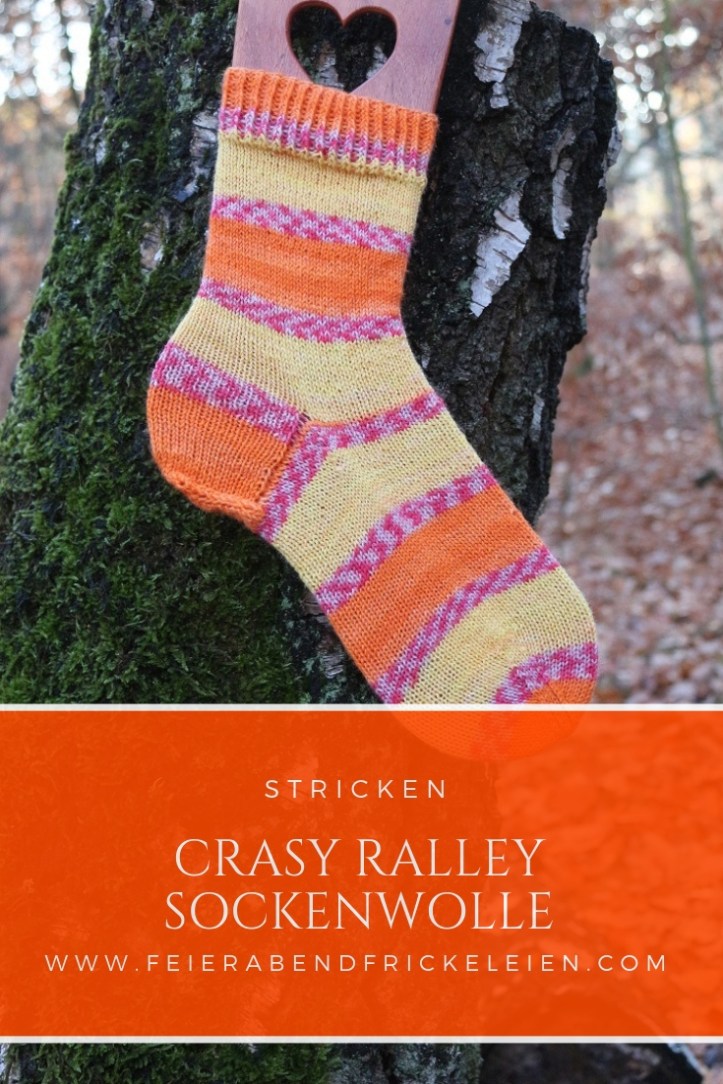 Die Sockenwolle, die ich verstrickt habe, gehört zur „Ralley“ Kollektion [Amazon Affiliate Link]. Passenderweise tragen alle Farben die Namen von Städten mit berühmten Rallyes, wie zum Beispiel Dakar oder Le Mans. Die von mir verstrickte Farbe heißt Daytona und ich bin fest davon überzeugt, dass Sylvie an mich gedacht hat, als sie diese Farbkombi ersonnen hat: Knallorange, Gelb mit ein bisschen Pink – das sind eindeutig Steffi-Farben! Jawohl!