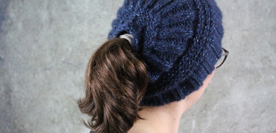 Jane hat sich bei ihrem Design „Zötze“ einen tollen Clou für Langhaarige einfallen lassen: Ein Loch für den Zopf. Den kann man da neckisch oben rausziehen, da stört er nicht und knubbelt auch nicht komisch unter der Mütze rum.