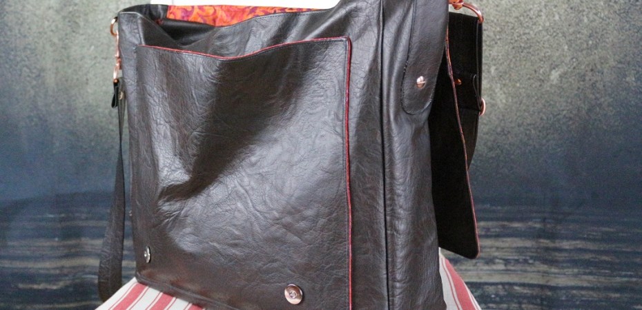 Mein Ausgangsmaterial war wieder das tolle Kunstleder in Vintageoptik von PP Kunstleder. Das Material gefällt mir gut und es lässt sich super verarbeiten. Aber Achtung: Es hat ein ziemlich hohes Eigengewicht, wer da empfindlich ist, sollte das eher nicht für so eine große Tasche verwenden.