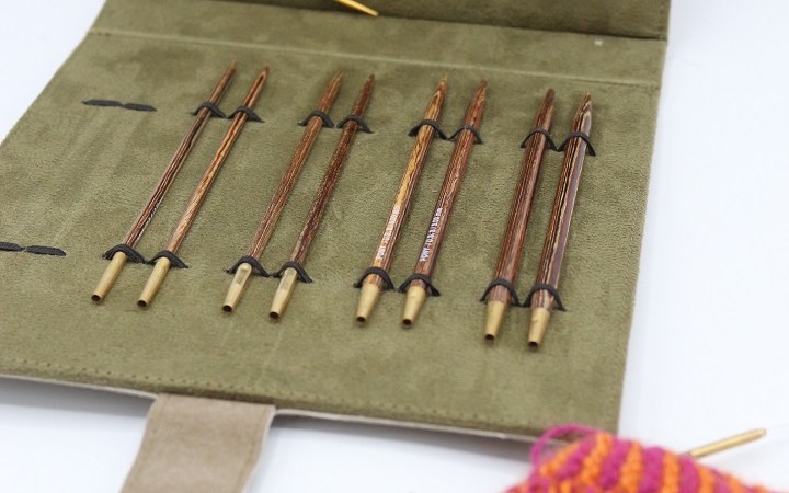 Insgesamt macht das Set optisch einen sehr hochwertigen und ansprechenden Eindruck. Ich finde ja immer, wenn man sich schon gute Nadeln kauft, muss auch die Verpackung stimmen. Das Perfect Set kommt in einer sehr schönen, stabilen Hülle in Wildlederoptik daher, in dem alle Teile sicher verstaut werden können. Die Verarbeitung ist sehr hochwertig, ich habe das Set jetzt schon oft benutzt, Nadeln rein und raus geschoben, Klappen geöffnet und es ist nichts ausgeleiert oder gerissen.