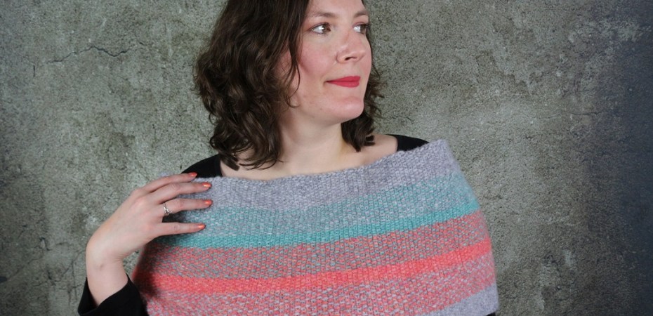 Das fluffige Garn gibt der webartigen Struktur des Loops einen leicht verwaschenen Effekt, der mich ein wenig an Wassermalfarben erinnert – mir gefällt das außerordentlich gut. Man kann den Loop auch sehr schön variieren, breiter oder schmaler stricken, den Umfang verändern oder mehr oder weniger verschiedene Farben verwenden. Eurer Fantasie sind keine Grenzen gesetzt.