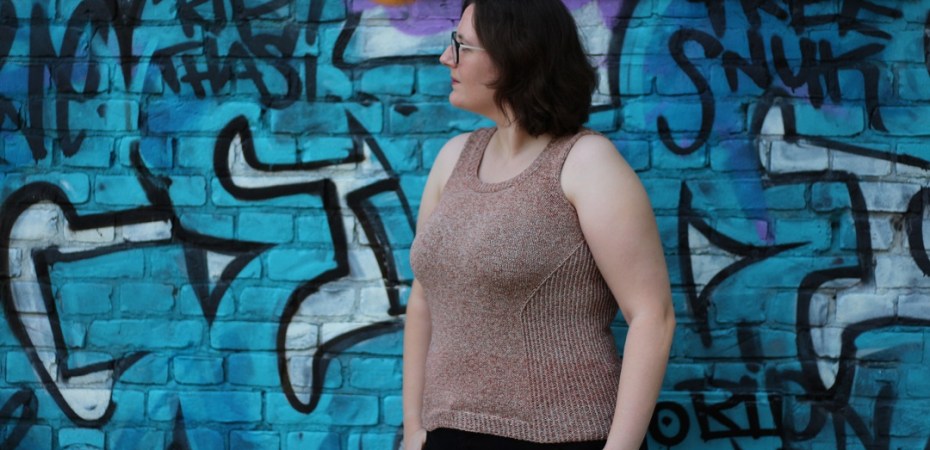 Ich bin mit meinen Blogbeiträgen im Moment ein wenig im Rückstau. Aber die Kombination aus anstehendem Umzug, baldiger Hochzeit und der furchtbar schwülen Sommerhitze hier in Berlin lässt meine Motivation, mich vor den Rechner zu hängen, gerade massiv sinken. Aber letztes Wochenende habe ich es immerhin geschafft, ein schon länger fertiges Teil abzulichten, das im Rahmen meines Sommer-Strick-Top-Wahns entstanden ist (das erste Teil davon seht ihr hier: KLICK): Mein Cityscape Tank nach einer Anleitung von Paper Daisy Creations (die Anleitung gibt es hier: KLICK).
