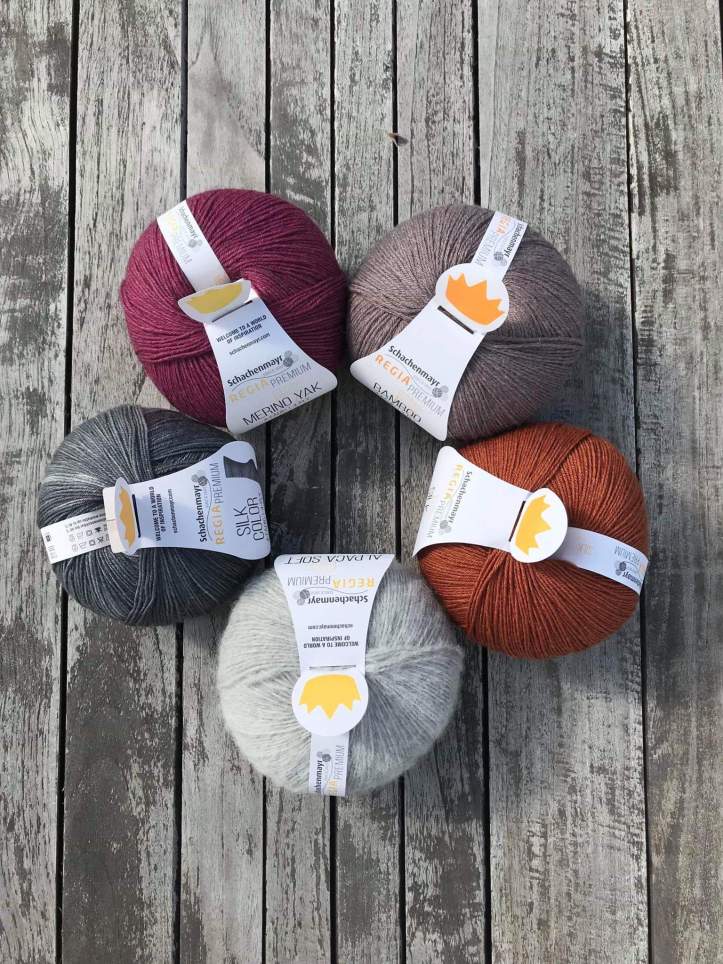 Zusammen mit Schachenmayr haben wir uns was Feines ausgedacht. Im letzten Jahr haben die Premium Garne der Regia Linie – von vielen liebevoll als Krönchenwolle bezeichnet – die Strickwelt im Sturm erobert. Die Regia Premium Garne sind Sockengarne mit einer hochwertigen Faserbeimischung. Zur Schurwolle gesellen sich wahlweise Yak, Alpaka, Seide oder Bambusfasern, die die Sockenwolle von den üblichen Wolle/Poly Gemischen abheben und zu etwas Besonderem machen. Und wer jetzt sagt, das ist viel zu schade für die Füße, wird von mir höchstpersönlich geschimpft: Nix ist zu schade für eure Füße, auch die haben es verdient, in feinste Garne gekleidet zu werden. Und die Garne halten das aus. Ich habe schon Socken aus der Yak (KLICK), Alpaka (KLICK) und Seide (KLICK) gestrickt und intensiv getragen, da ist noch nix kaputt gegangen. Also traut euch und gönnt euch ein wenig Luxus an den Füßen.