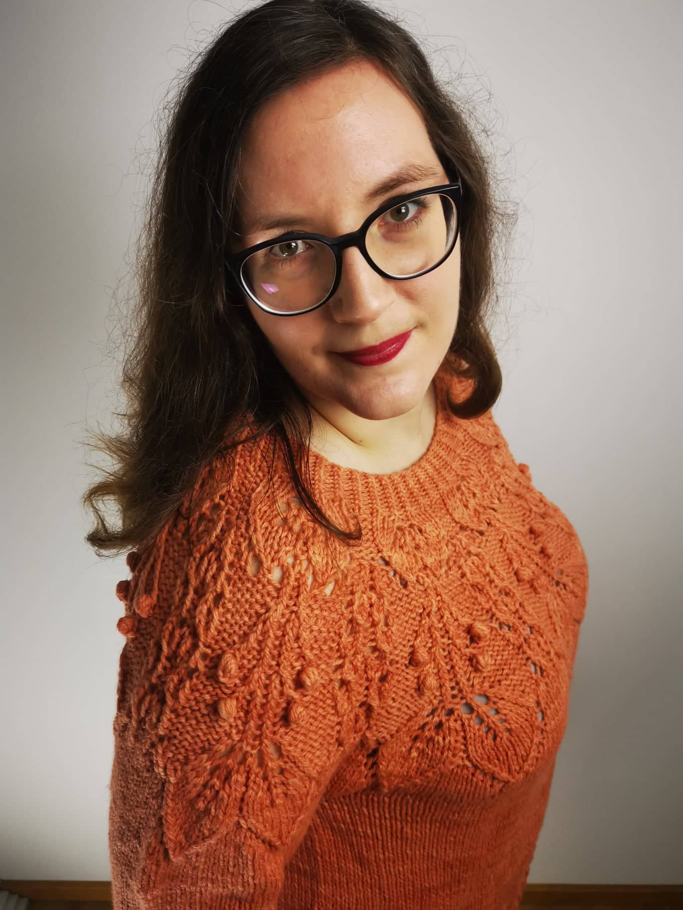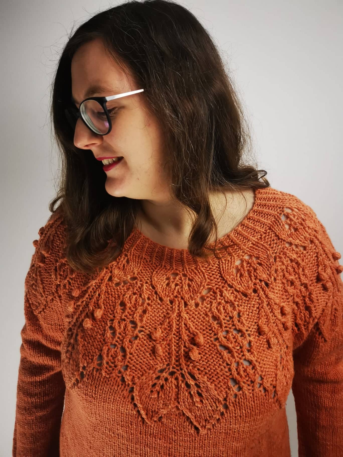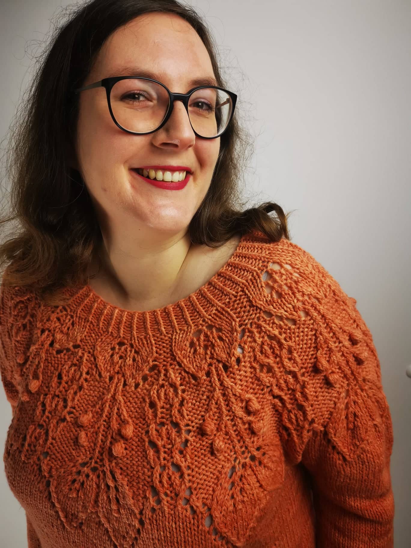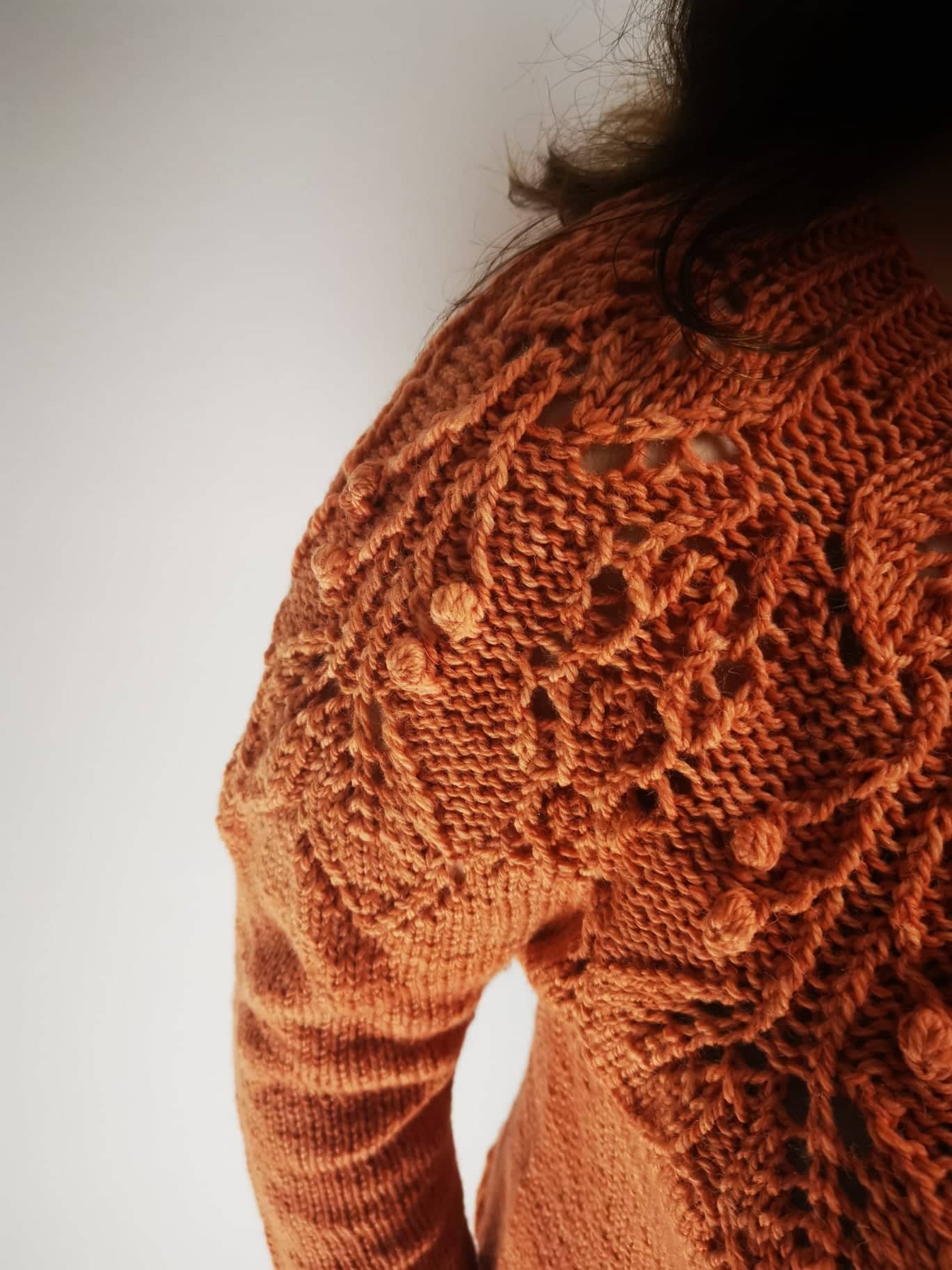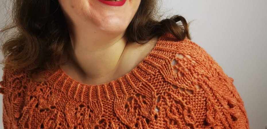 Eine der beiden Färber:innen (die beiden sind Schwestern) hat vor einiger Zeit begonnen, eigene Strickstücke zu entwerfen. Darunter der grandiose Falling Leaves Sweater [Achtung ravelry Link], ein wunderschöner Pulli mit einer hammer Lace-Passe mit einem Blattmuster. Der Pulli hat mir so gut gefallen, dass ich mich direkt als Teststrickerin gemeldet habe, weil ich ihn unbedingt direkt und sofort stricken wollte.